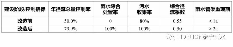五、专业技术为基础,建设效果显著 1. 降低了内涝风险:优化了排水路线,通过植草沟转输,提高了排水能力,其他具体成效如下表所示。 2.水生态效益:通过低影响开发建设,采用SWMM模型连续降雨模拟可知,嘉兴市农经局区块年径流总量控制率达到79.9%。 3.水环境效益:通过低影响开发建设,预期处理初期雨水量(按100场雨/年,初期雨水按8mm计算)120816kg/年(COD含量按200mg/L)。由此可知,通过本工程改造,每年可削减COD入河量2163kg。 4.水安全方面:通过本工程排水管网改造后,排水管道设施重现期可以提高至2年一遇的标准。 5.水资源方面:通过供水管网改造和雨水回用后,预期整个片区每年可节省自来水约600吨。