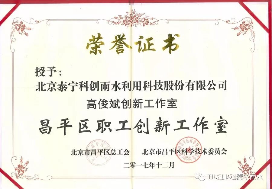 上述成果的取得,表明了泰宁公司在创新人才培养方面获得了社会的肯定。高俊斌是公司的研发技术负责人,经过在雨水领域的长期实践,取得了丰富的成果。以他为带头人的创新团队,累计获批专利100余项,其中发明专利28项,国际专利1项,多项技术成果填补了国内空白,相关成果获得了北京市科学技术奖三等奖。同时,团队多名成员参与了雨水领域多部标准和规范的编制工作。十几年来,团队中培养了多名创新人才和技术骨干,相继参与了国家、省、市等重点工程上百项,已成为公司的核心力量。
